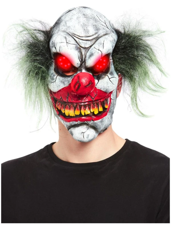 Boze Clown Overhead Masker, Latex, met Oplichtende Ogen