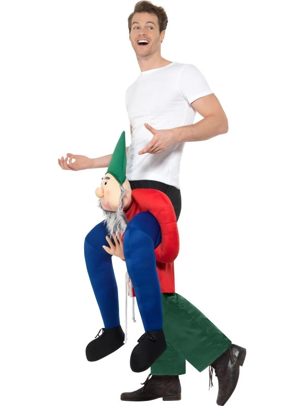 Doordat de eigen benen in het kabouter gedeelte verdwijnen en de nepbenen gevuld zijn lijkt het net of je op een kabouter zit.