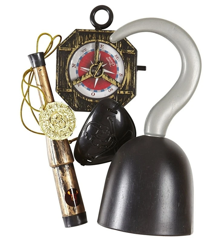 Inhoud: Kompas, ooglap, piratenhaak, verrekijker en medaillon