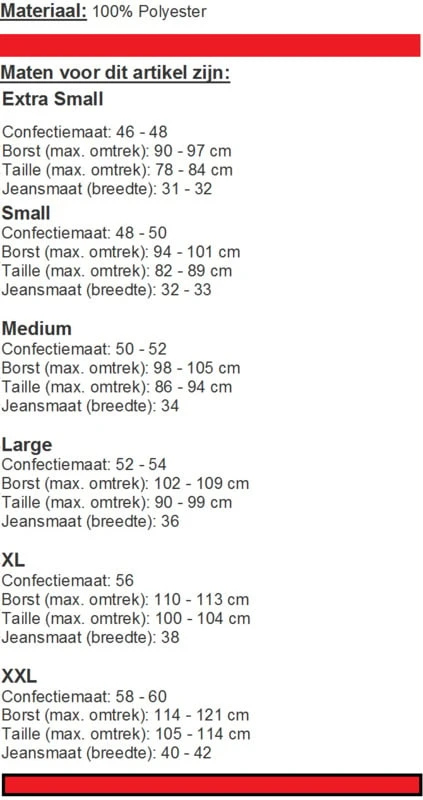 | Maat | S, M, L, XL |