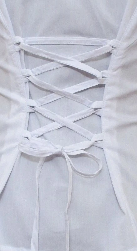 Model: super pasvorm. met trachten knopen, pofmouwen aan de achterzijde te stellen met touwtjes