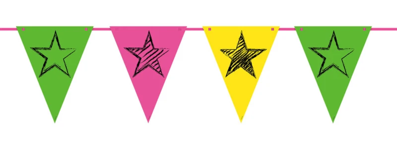 Thema: neon en fluoriserend, neon feest, themafeest, goedkope, versieringen, verjaardagsfeest, vlaggenlijnen
