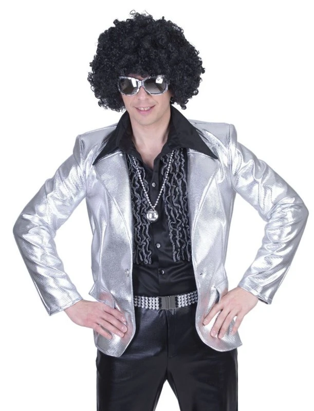 Thema: zilveren kleding, colbert zilver, zilvere kolbert, glitter en glamour kleding, themakleding zilver, goedkope zilveren colbert, disco colbert, silver